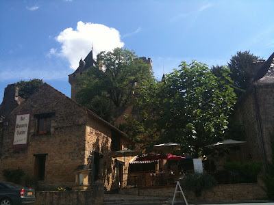I think it is the most beautiful of any I have ever seen; it is perched on a cliff, high above the twisting Dordogne river below. Unfortunately, it is not open to the public so the only picture I could get is this shot of the tower hidden behind the village (the ones above are from the internet):